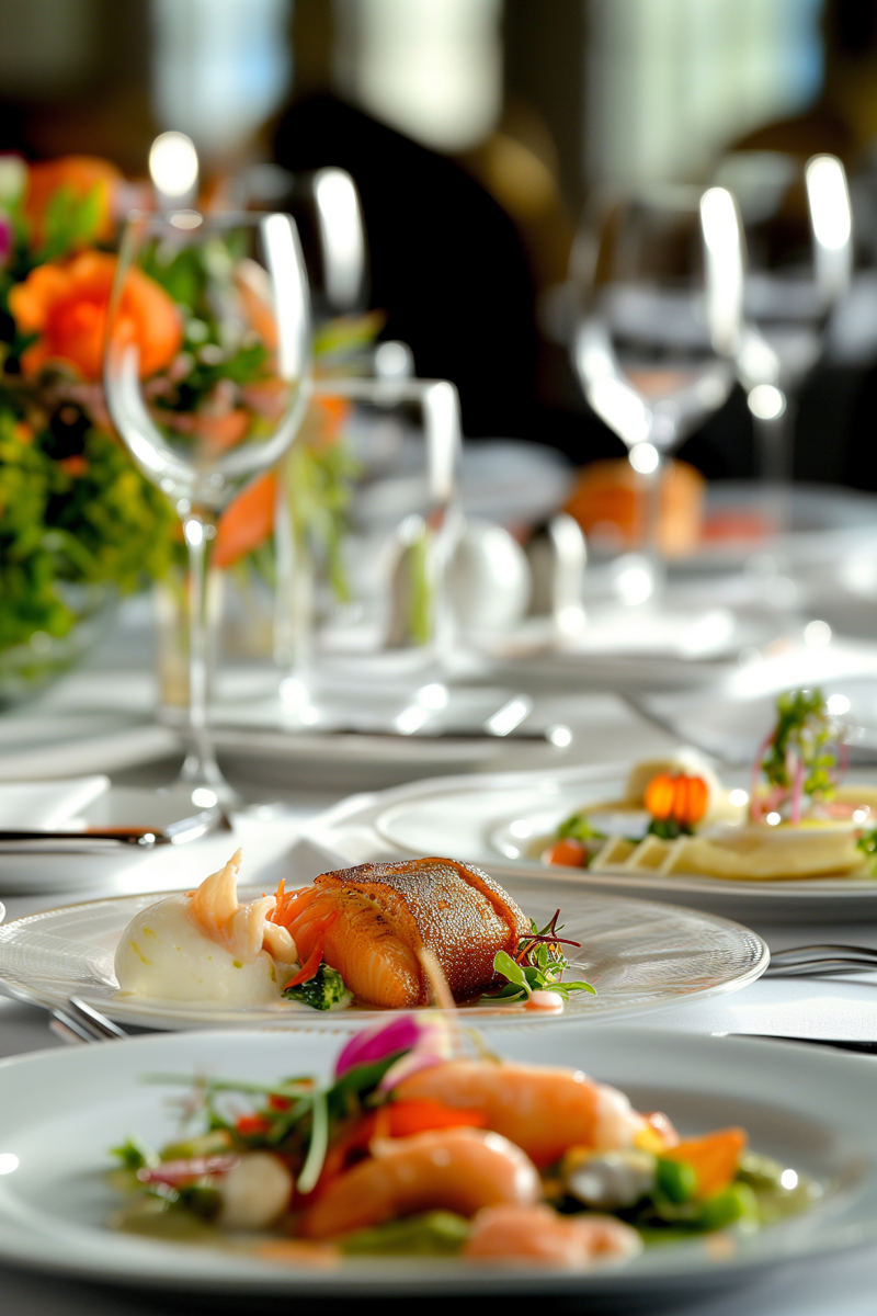 Delicious seafood main course with grilled fish and cream sauce